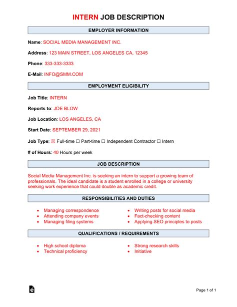 Here are 6 versions of an intern job description sample from brands like. Web 6 samples of an intern job description. Web this intern job description template is a great blueprint to help you create a job posting that will attract the most dedicated candidates. Web 1 / 2 example 1 we are looking to hire new interns to assist in music video production needs at stonecutter recording.