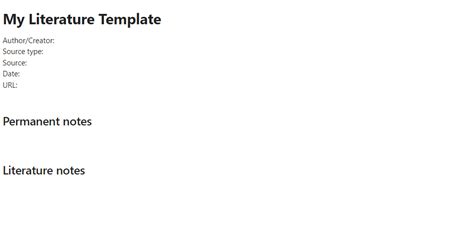 Literature Note Template Obsidian. Daily notes (journaling), weekly review, monthly review, article writing, people, ideas and books. If you are not using zettelkasten you may also benefit.