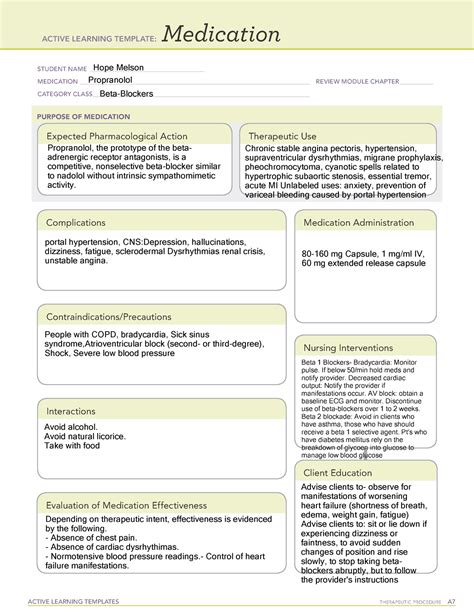 Propranolol Ati Medication Template. Web propranolol 1104 beta adrenergic blocker. Med template for nursing (ati practicing for nclex and assignments.