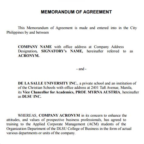 11+ Formal Memorandum of Agreement Templates PDF