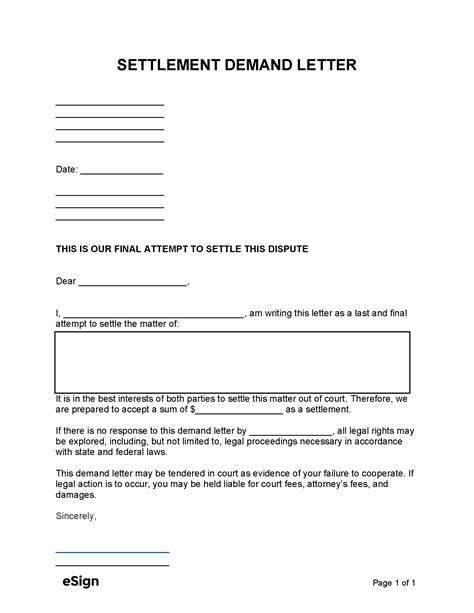 Settlement Demand Letter Template. Don’t write war and peace the size of your settlement demand letter should correlate to the size of your claim.