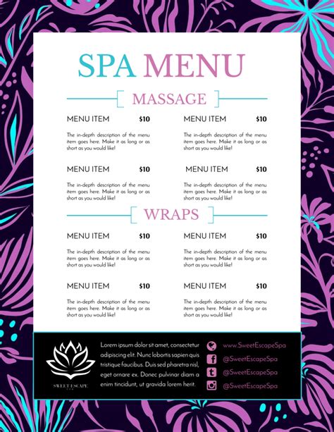 Spa Menu Template. Skip to end of list all filters skip to. Web spa templates browse our free templates for spa designs you can easily customize and share.