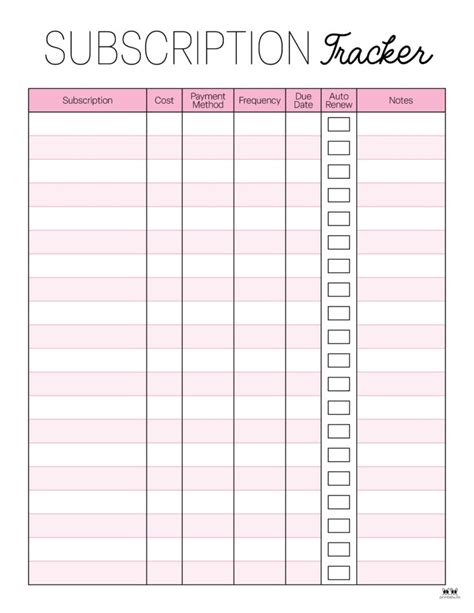 Subscription Tracker Printable, Membership Tracker, Monthly