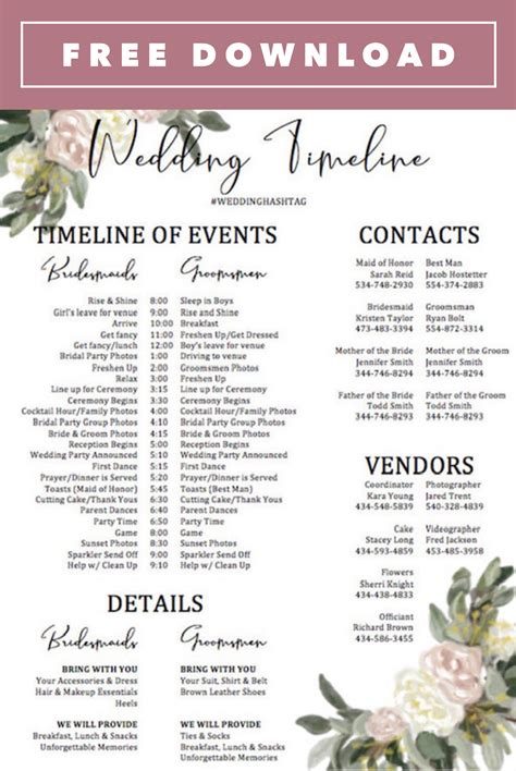 Free Wedding Day Timeline Template Pdf Best Design Idea