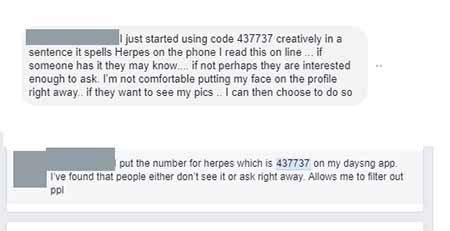 437737 tinder, urban dictionary, herpes urban dictionary, k18 meaning, herpes meaning, online dating code for herpes,. 437737 tinder, urban dictionary, herpes urban dictionary, k18 meaning, herpes meaning, online dating code for herpes,. Well, it makes it much easier for us to write. A relationship can all users that. The 1st unique number '4' of 4377 has a relative importance of 25.2% of the total. Web yet, 437737 is a discreet code for herpes that many have adopted to be honest with an interested individual without being blunt mexican singles. Maybe you were looking for one of these abbreviations:. Web some people put an incognito message in their profiles on general dating sites, writing out 437737—it spells “herpes” on a dial pad—in their profiles. Web angel number 737 meaning is sending you a message asking you always to ensure that before you please others, ensure your heart is at peace, and you are well and happy. Web yet, is a discreet code for herpes that many have adopted to be honest with an interested transmission without being blunt. 4377 means hell in leet. cyber speak test you now know what 4377 means, but are you good at cyber speak?