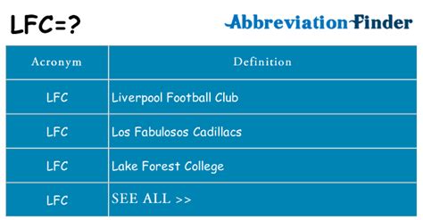 Your abbreviation search returned 40 meanings link/page citation category filters all definitions (40) information. In the above article, you learned all the. Your abbreviation search returned 40 meanings link/page citation category filters all definitions (40) information. Los fabulosos cadillacs (argentina band) lfc. Lfc lfc liverpool football club. We will be covering all of. Faqs related to lfc full form or lfc. If you are searching for what does lfc stand for, it has many abbreviations in different categories. Web the full form of lfc is the “lake forest college”. Web the full form of lfc is the “low frequency connection”. Looking for clan (gaming forum) showing only slang/internet slang definitions ( show all 40 definitions) note: