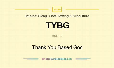 What Does Tybg Mean. Based, as a general slang word, originated from the 1980s. Tybg is a slang term.