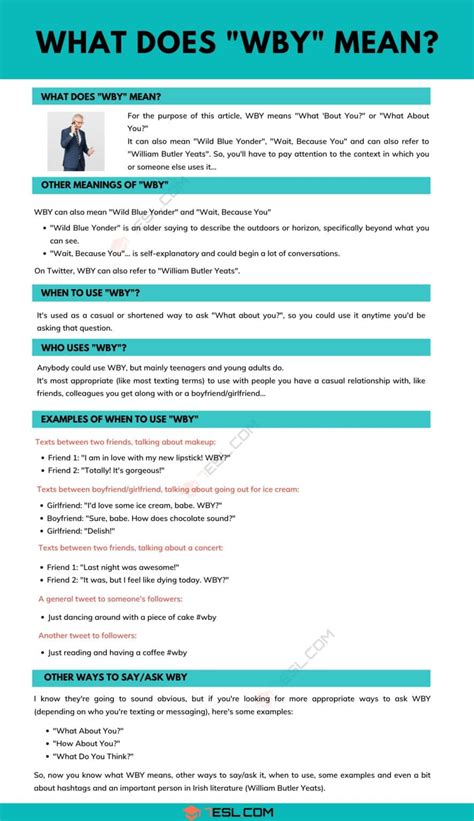 Asking somebody about how they feel about the subject of conversation or what they plan to do. Web another meaning of wby is what's best for you. this is a phrase that is often used by family and friends when giving advice to someone. Web wby is an internet meme that has been around for a while. 20 categories sort suggest to this list related acronyms and abbreviations. It means what ’bout you or what about you? This page is about the various possible meanings of the acronym, abbreviation, shorthand or slang term: Web wby is an abbreviation used on snapchat and other similar platforms. It is used during chats and online conversations on forums, social networking sites. Web what does wby stand for? Web wby means “what ‘bout you?.” the abbreviation wby is used with the meaning “what ‘bout you?,” which most often translates as “hello, how are you?.” wby is often used as. Asking somebody about how they feel about the subject of conversation or what they plan to do.