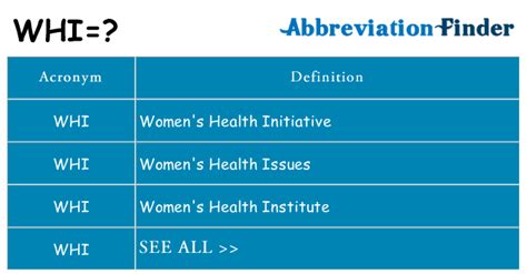 What Does Whi Mean. Possible whi meaning as an acronym,. Your abbreviation search returned 8 meanings link/page.
