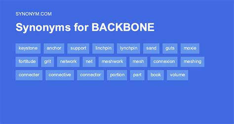 Another Word For Backbone. Synonyms for backbone (other words and phrases for backbone). Synonyms for backbone from random house roget's college thesaurus,.