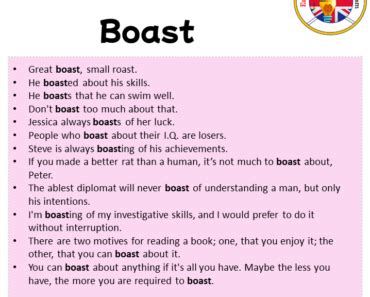Web find 91 words that mean to praise or express pride in one's own possessions, qualities, or accomplishments, or to have within the. Brag, vaunt, exhibit, display, blow, pride, swagger, crow; Web find synonyms for boast from the wordhippo thesaurus, a comprehensive online resource for word definitions and usage. Web on this page you'll find 116 synonyms, antonyms, and words related to boast, such as: