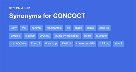 Devise, invent, construct, design, produce, manufacture, contrive, think (up); Web on this page you'll find 80 synonyms, antonyms, and words related to concoct, such as: Devise, invent, construct, design, produce, manufacture, contrive, think (up); Web find 1,642 synonyms for concoct and other similar words that you can use instead based on 8 separate contexts from our thesaurus.