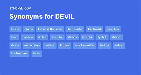 Web on this page you'll find 48 synonyms, antonyms, and words related to devil, such as: Find 2,430 synonyms for devil and other similar. Angels, animals, beasts, brutes, critters,. Web what is the plural of devil? Angel, animal, beast, brute, critter, beastie, snake, clown What is the adverb for devil? What is the noun for devil? Satan, lucifer, serpent, beelzebub, old nick, archfiend, fiend, dickens; Demons, ghosts, ghouls, vampires, spirits, daemons, nightmares, imps; Web words related to devil are not direct synonyms, but are associated with the word devil. Web on this page you'll find 48 synonyms, antonyms, and words related to devil, such as: