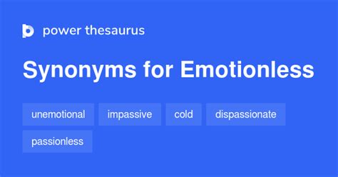 Another Word For Emotionless. Stoic, unemotional, passionless, calm, impassive, bland, stoical, numb; Web find 1,488 synonyms for emotionless and other similar words that you can use instead based on 2 separate contexts from our.