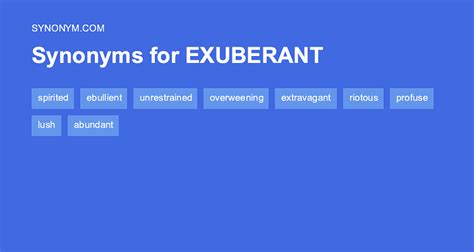 Another Word For Exuberant. Web on this page you'll find 131 synonyms, antonyms, and words related to exuberant, such as: Here's a list of similar words from our thesaurus that you.