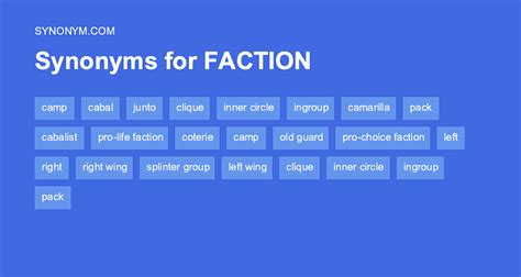 Web synonyms for faction (other words and phrases for faction). Web find 86 different ways to say faction, along with antonyms, related words, and example sentences at thesaurus.com. Web find synonyms for faction from different contexts, such as a small organized group, dissension, alliance, or a group of people. Party, side, wing, sect, coalition, team, bloc, movement, body, set Web synonyms for faction (other words and phrases for faction).