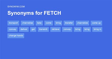 Another Word For Fetch. Cost, bring, sell (for), go (for), run, come (to), ask, demand; Web find 2,612 synonyms for fetch and other similar words that you can use instead based on 14 separate contexts from our thesaurus.