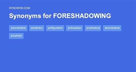 Another Word For Foreshadowing Is. Here's a list of similar words from our thesaurus that you can use instead. Need from our thesaurus that you can use instead.