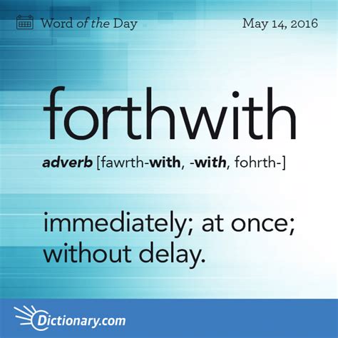 Web thesaurus > without delay or waiting > forthwith. These are words and phrases related to forthwith. Immediately, promptly, instantly, now, directly, shortly, soon, right; Click on any word or. Web find 14 different ways to say forthwith, along with antonyms, related words, and example sentences at thesaurus.com. Web find 347 synonyms for forthwith and other similar words that you can use instead based on 2 separate contexts from our thesaurus.