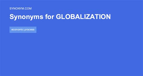 Another Word For Globalization. Web need synonyms for globalization? Here's a list of from our thesaurus that you can use instead.