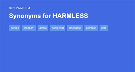 Another Word For Harmless. Another way to say harmless? Web on this page you'll find 57 synonyms, antonyms, and words related to harmless, such as: