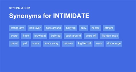 Web what is another word for intimidate? Contexts to scare or cause to feel fear to bully or threaten, especially by causing. Web what is another word for intimidate? Click on any word or phrase to go to its thesaurus page. Web on this page you'll find 85 synonyms, antonyms, and words related to intimidate, such as: These are words and phrases related to intimidate.
