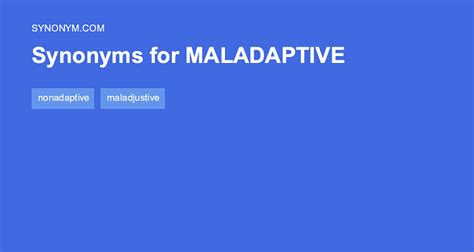 Web the meaning of maladaptive is marked by poor or inadequate adaptation. Web on this page you'll find 12 synonyms, antonyms, and words related to maladaptive, such as: Marked by poor or inadequate adaptation; Web find 533 synonyms for maladaptive and other similar words that you can use instead based on 2 separate contexts from our thesaurus.