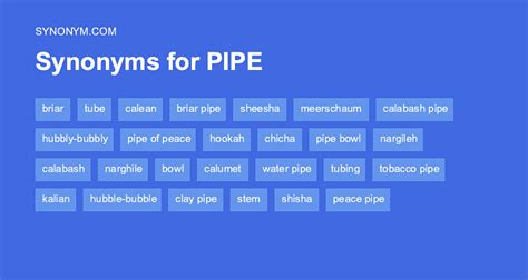 Web find 2,176 synonyms for pipe and other similar words that you can use instead based on 25 separate contexts from our thesaurus. Conduit, tube, channel, funnel, piping, drain, duct, line, trough, penstock Conduits, tubes, channels, drains, funnels, ducts, lines, troughs, pipings, penstocks. Words related to are not direct synonyms, but are.