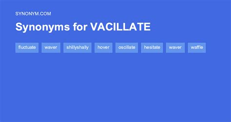 Web what is the noun for vacillate? Web on this page you'll find 73 synonyms, antonyms, and words related to vacillate, such as: Hesitate, falter, waver, dither, debate, scruple, stagger, wait; Find 1,195 synonyms for vacillate and other similar words that you can use instead based on 7.