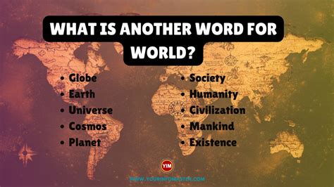 Web find 35 different ways to say world, along with antonyms, related words, and example sentences at thesaurus.com. Web synonyms for world: Web find 1,713 synonyms for world and other similar words that you can use instead based on 14 separate contexts from our thesaurus. Void, nothingness, striking distance, shouting. Synonyms for world (other words and phrases for world). Humanity, people, public, society, folks, humankind, species, community; Web find 35 different ways to say world, along with antonyms, related words, and example sentences at thesaurus.com. Earth, globe, mankind, everybody, everyone, humanity, humankind, man, the public, sphere,. Another way to say world?