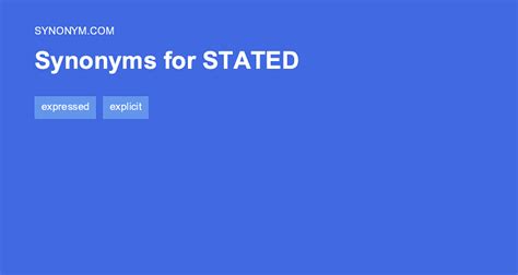 Declared, specified, avowed, specific, explicit, definite, express, unequivocal; Web find 7 different ways to say stated, along with antonyms, related words, and example sentences at thesaurus.com. Synonyms for stated from random house roget's college thesaurus, revised. Web find 1,876 synonyms for stated and other similar words that you can use instead based on 16 separate contexts from our thesaurus.