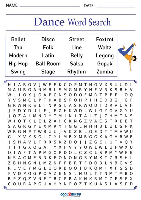 Printable Dance Word Search Cool2bKids