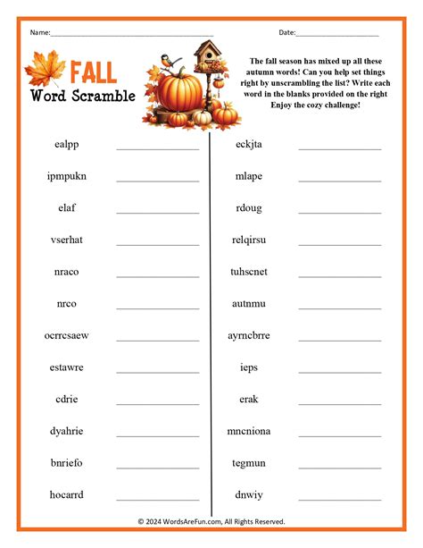 Fall Word Scramble for Kids Free Printable Worksheet Productive Pete