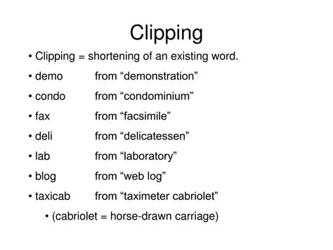 Examples Of Word Clipping. Web 49 rows clipped words are words shortened by common use; They are a shortened abbreviation of a word, which makes them.