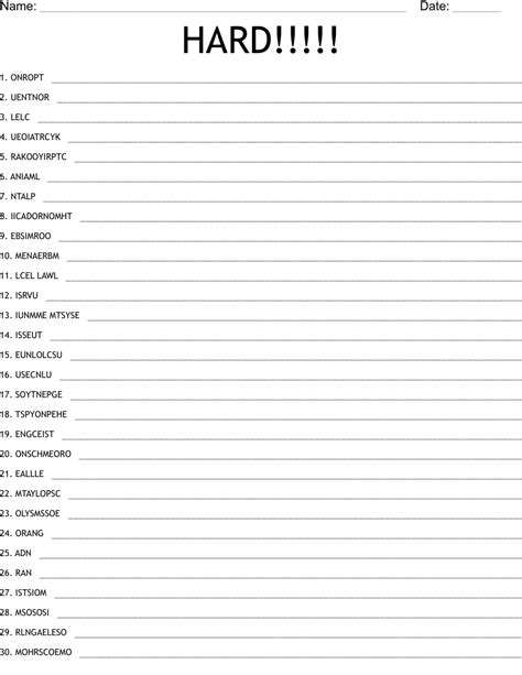 Web 20 rows hard word scramble. Can you conquer our hard word scramble by solving a range of difficult.