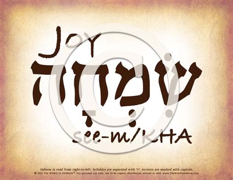 Hebrew Word Joy. Joy, gladness, mirth nas exhaustive concordance word origin.