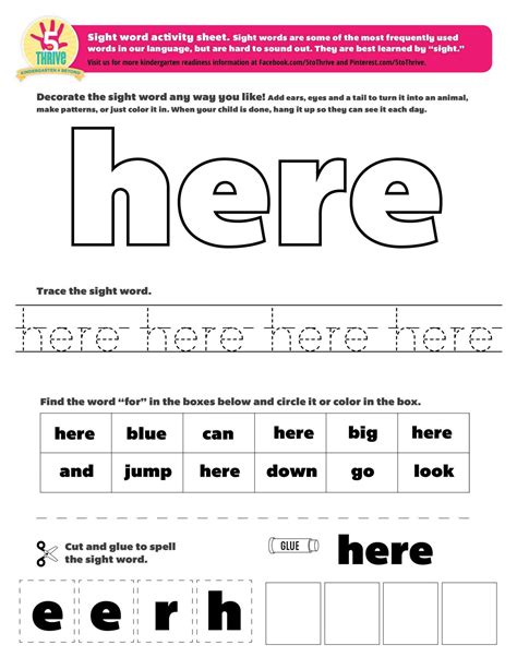 Free Printable Sight Word Practice here Worksheet kiddoworksheets