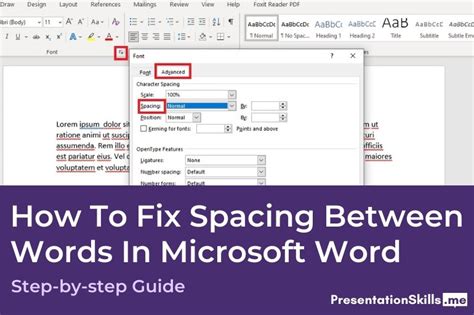 Web how to fix spacing between words in word highlight the text you want to change and select the home tab. Web open the word document> home tab> font section and click on the side arrow to open the font settings>.