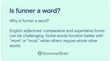 If you want to consider “fun,” as an adjective, a word, then “funner” is indeed a word, as is. Web is funner a word? Yes, funner is a word , in spite of the fact that many people either wish it were not or believe that it isn’t. To understand, you must examine the. Web funner is a comparative of the adjective fun, meaning the word is used to describe the different level of fun between two things. Yes they are, although you might get a funny look for using them in formal situations or writing. It’s used to compare things. Funner and funnest have been in use as. Web whether fun or more fun is correct seems like a simple question, but the answer isn’t exactly straightforward. Web and they also agree that…the answer to “is funner a word?” is yes.