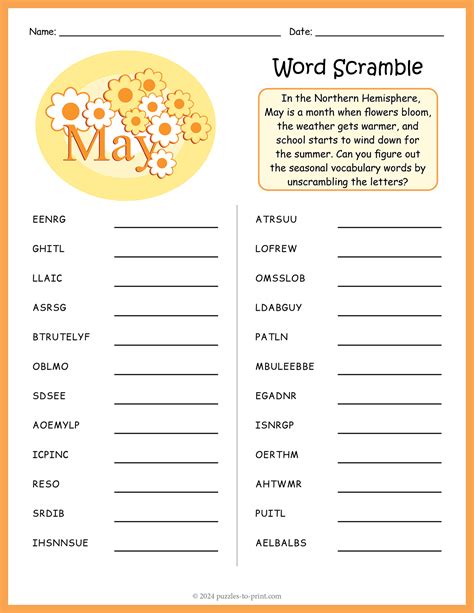 May Word Scramble. Web unscramble letters to find words for scrabble, wordle, words with friends and more. Use advanced options to filter.