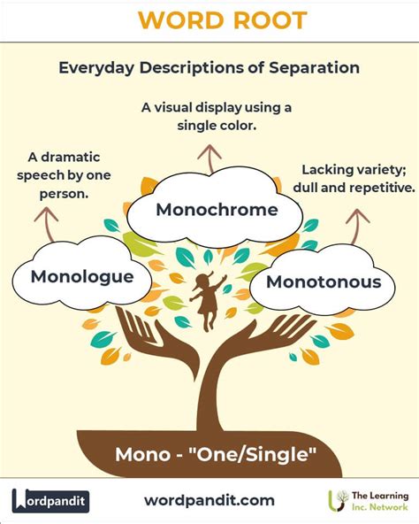 Mono Root Word Examples. An abnormal fear of being the only one there; Web long speech by one person.