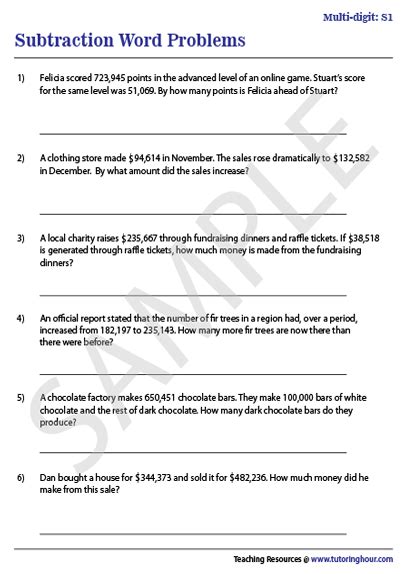 Multi Digit Subtraction Word Problems. Web this large collection of printable word problem worksheets, ideal for children in kindergarten through grade 4 features.
