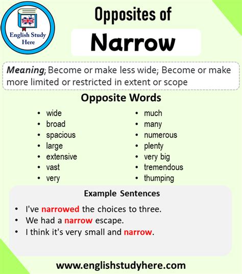 Narrow Opposite Word. See synonyms, antonyms, and related. Web find the opposite of narrow in different contexts, such as adjective, verb, or noun.