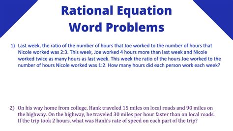 Rational Equation Word Problem YouTube