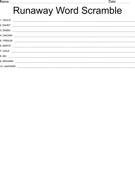 Runaway Word Scramble. Web 2 words found 5 letter words made by unscrambling letters runway unary 1 words found 4 letter words made by. Web using the word generator and word unscrambler for the letters r u n a w a y, we unscrambled the letters to create a list of.