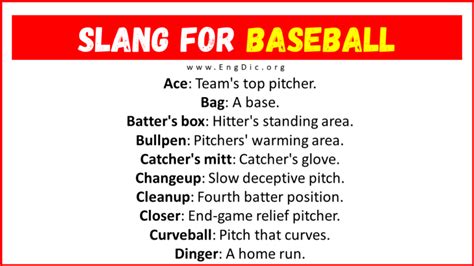 Web well, we’ve put together this extensive list of some commonly used baseball terms and jargon you may come across when watching a baseball game or talking with a player, coach or baseball. A hit that causes the. A hitter may lay down a bunt,. Web dive into baseball slang terms that every dedicated fan ought to be familiar with: The bushes or the sticks are small towns where minor league teams may operate. Web 17 baseball slang terms you should know 1. A busher refers to someone from the bush leagues: Web well, we’ve put together this extensive list of some commonly used baseball terms and jargon you may come across when watching a baseball game or talking with a player, coach or baseball. When a groundball unexpectedly makes a strange jump. Web from ace to yakker, a glossary of baseball slang around the horn:. Web a slang term for play that is of minor league or unprofessional quality.