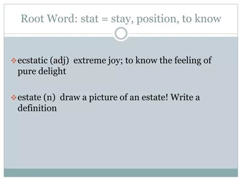 Stat Root Word. This latin root is the word origin of a large number of. The word stat would be.