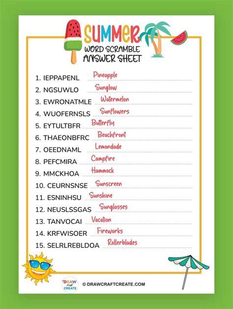 Summer Word Scramble Answer Key. M u m r s. L a y f m.