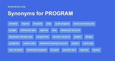Web find 3,444 synonyms for program and other similar words that you can use instead based on 33 separate contexts from our thesaurus. Synonyms for program from random house roget's college thesaurus, revised and. Scheme, plan, design, concert, blueprint, shape, chart, maneuver;.