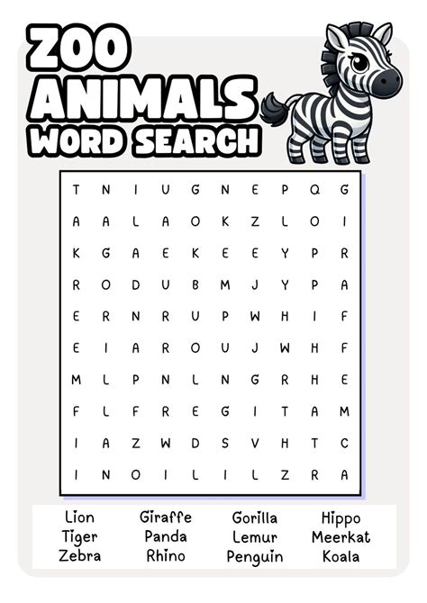 Word Search Zoo. Choose a premade word list or penguin elephant bear seal camel ape tiger bat dolphin kangaroo hippo horse zebra. Web we’ve also compiled a list of word searches and other activities that you might like!